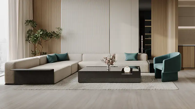 - Designed as an immersive lifestyle sanctuary, integrates refined materials such as polished marble, natural oak wood, and brushed brass accents.