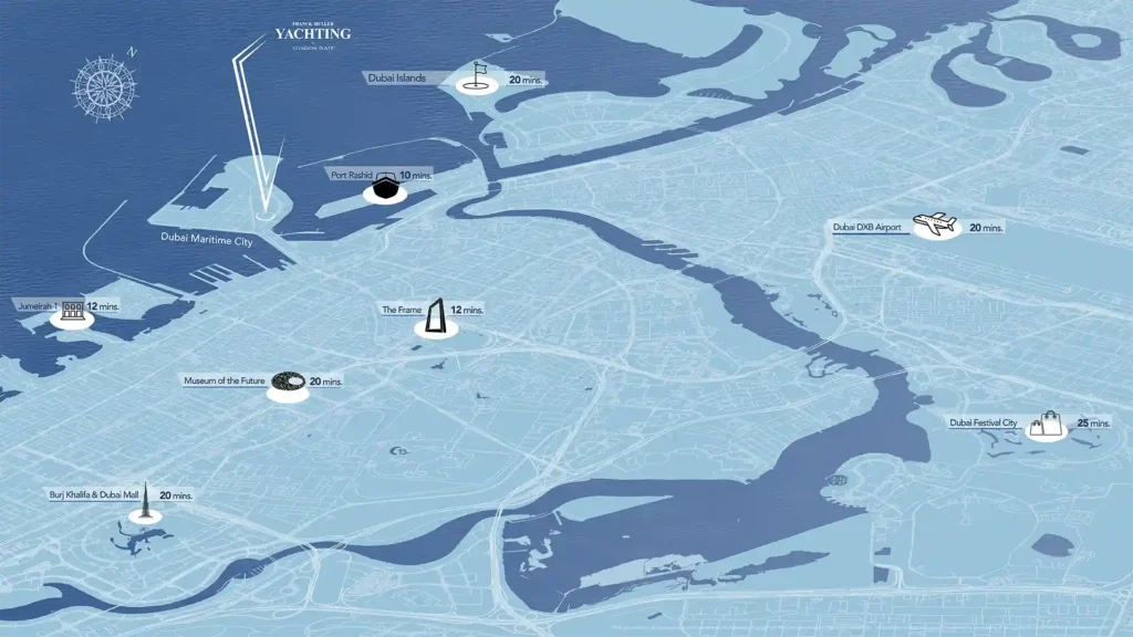 The most sought-after destinations in Dubai such as Downtown Dubai, Palm Jumeirah, as well as some of the major cultural enclaves are within moments of the residents, assuring the privilege that every corner of the city is within sleek reach. Whether it is a self-governed approach with a vessel or the urban road system, the connectivity of both kind of lifestyles, the recreation and the business makes the lifestyle seamless as the exclusiveness of the site maintains a peacefulness of waterfront enclave.