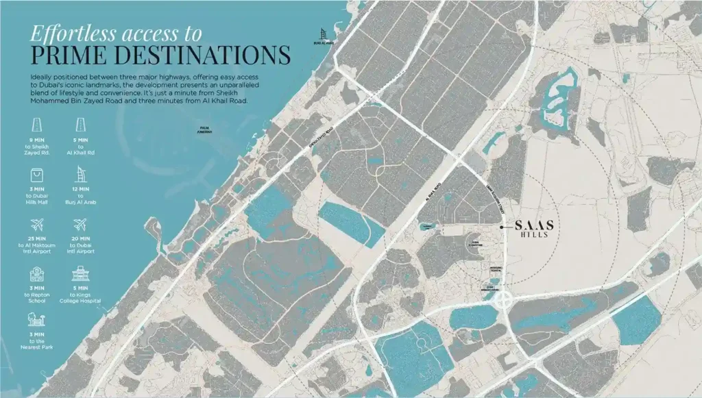 SAAS Hills at Dubai Science Park is an architectural marvel developed by SAAS Properties lined with luxury residential studios, 1, 2 and 3-bedroom apartments in Dubai. The cutting-edge façades present a harmonious blend of modern design and elegant functionality with twin towers redefining luxury living. With premium surprises, tower A boasts 32-storey, while tower B rises in the sky with 34-storey luxury residential living, providing stunning views of the dynamic Dubai skylines and leisure surroundings. This newly launched façade promises an unmatched living experience, with its sleek design architecture, exclusive amenities, and a community-centric lifestyle that elevates everyday living.