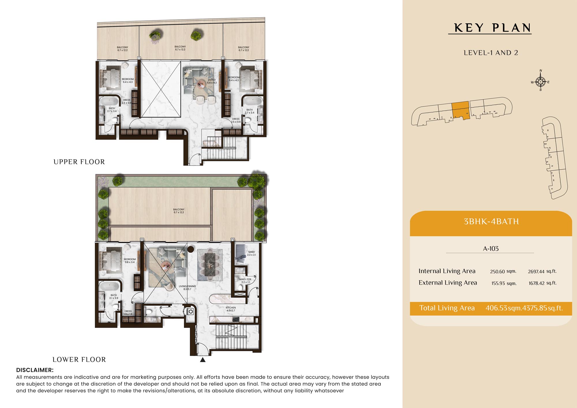 Tower A 3 Bedrooms + Maid Level 1 & 2 (A-103) 4375.85 Sq Ft Duplex Apartments