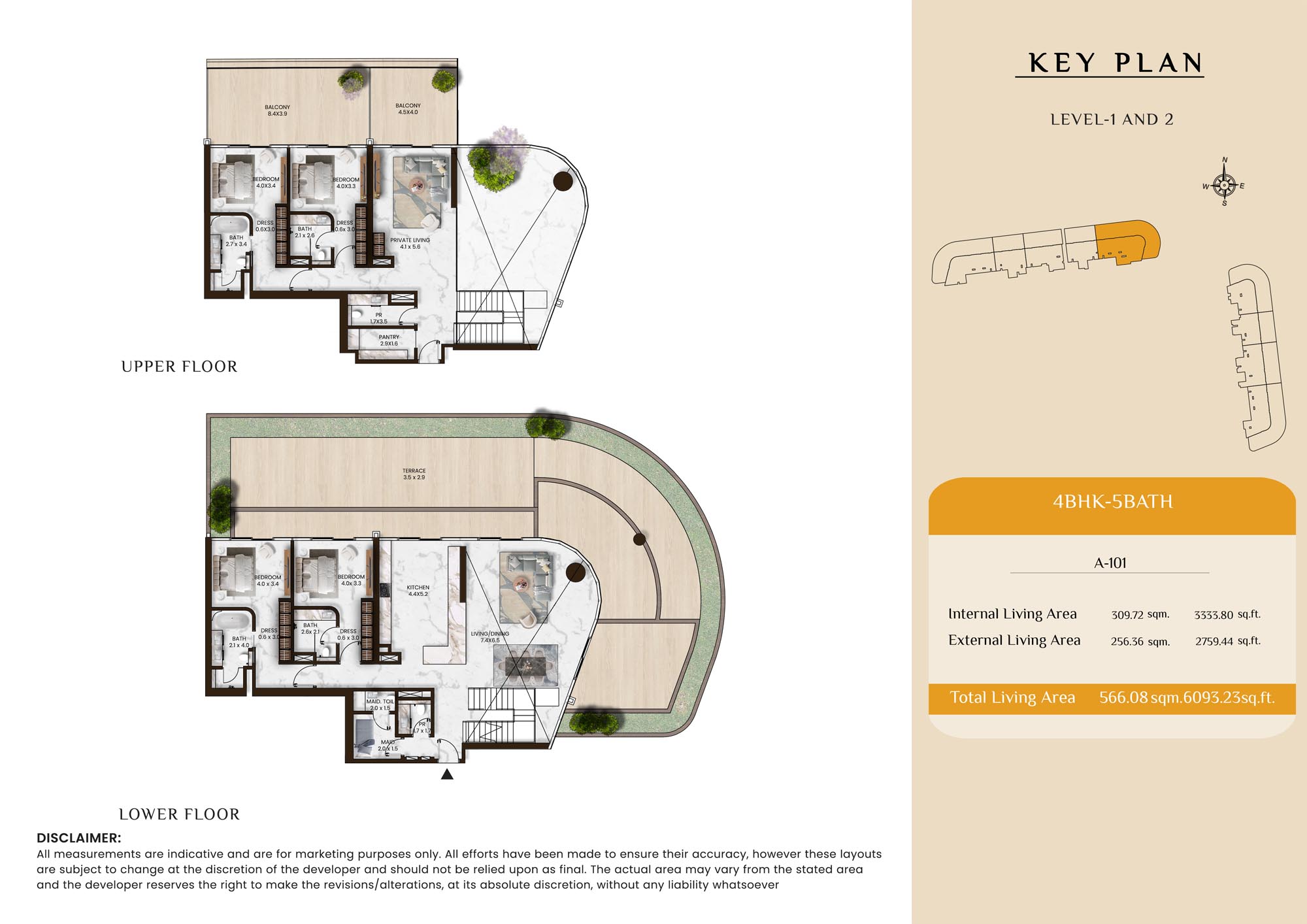 Tower A 4 Bedrooms + Maid Level 1 & 2 (A-101) 6093.23 Sq Ft Duplex Apartments